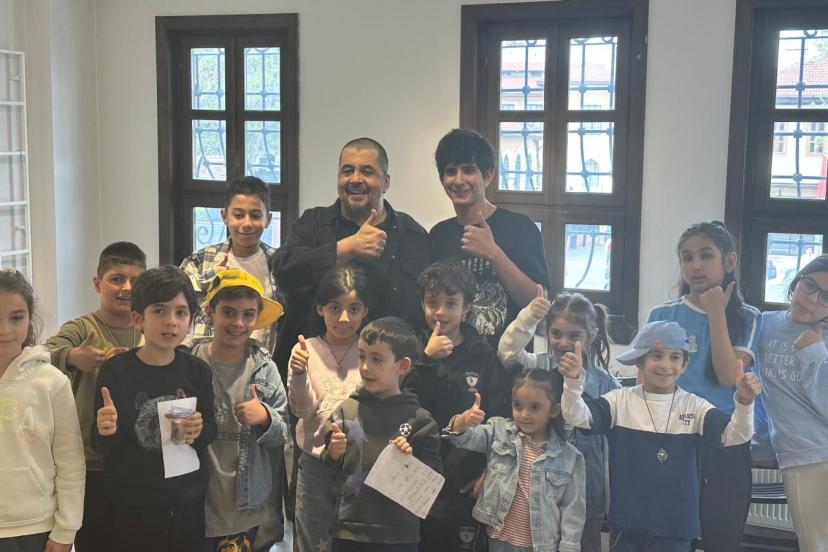 Atölyeye konuk olan rap sanatçısı Fuat Ergin, çocuklarla birebir ilgilenerek deneyimlerini paylaştı. Sanatçı, müziğin birleştirici gücüne dikkat çekti ve çocukların yaratıcılığından duyduğu memnuniyeti dile getirdi.