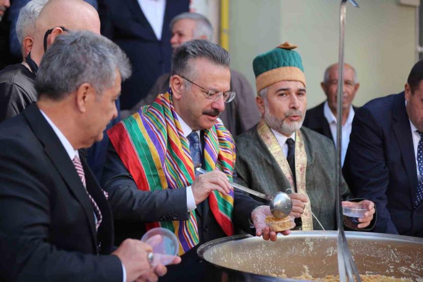 Eskişehir’de Bereket Duası ile başlayan Ahilik Haftası etkinlikleri çerçevesinde Vali Hüseyin Aksoy, katılımcılara irmik helvası ikram etti.