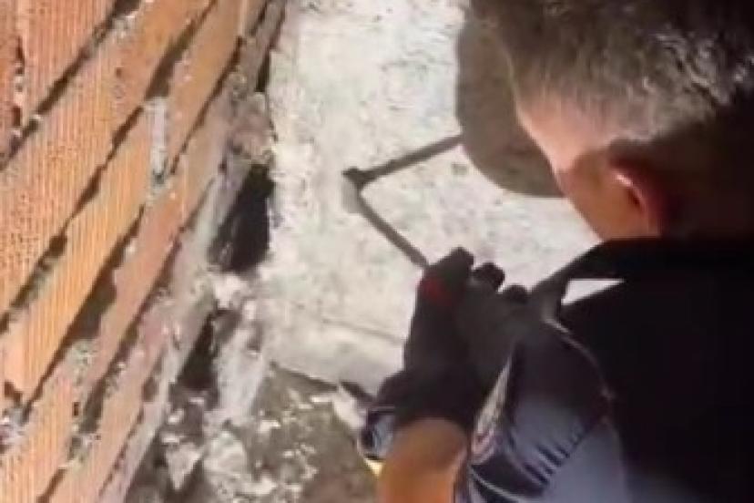 Eskişehir’de 2 binanın arasına sıkışan 1 anne ve 4 yavru kedi, itfaiye ekiplerince kurtarılmalarının ardından ihbarcı vatanda...