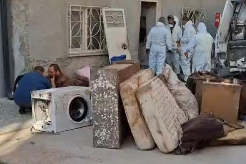 Bahse konu ev, yapılan temizlik çalışmalarının ardından görüntülendi. Neredeyse tüm eşyaların çıkartıldığı evin zemininde bulunan fare ve böcek ölüleri göze çarptı. Mutfak tezgahının ise oldukça kirli olduğu, dolapların da örümcek ağlarıyla kaplandığı görüldü. Tüm temizlik ve ilaçlama çalışmalarına rağmen evin içerisinden gitmeyen ağır koku, çevreden geçen vatandaşlara zor anlar yaşattı.