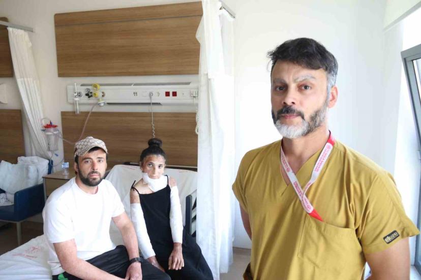"Hastalarımız Nermin ve İsmail. Evlenmelerine üç gün kala evde doğal gaz sızıntısı, alev yanığı nedeniyle tedavi görüyorlar. Ardından ikisinin de elleri, kolları ve boyunları yanıyor. Özellikle Nermin biraz daha ağır yanıyor. Çok ağır yandığı için kollarını ve parmaklarını açamıyor dolayısıyla ne yüzük takabiliyorlar ne de elbise giyebiliyorlar. Ellerini rahat kullanamıyorlar. Aynı zamanda da boyun bölgesinde yanığı olduğu için Nermin’in boyun kontraktörü nedeniyle boynunda bir eğrilik meydana geliyor. Onlar dernek aracılığıyla bize ulaştılar. Biz ameliyatlarını yapabileceğimizi söylediğimiz için Azerbaycan’dan buraya geldiler. Onlar da bize başvurdular ve biz de gereken tedavimizi yaptık. Biz her iki hastanın da parmak aralarını açtık. Özellikle de Nermin’in kolları ileri derecede kontrakteydi. Biz dirsek seviyesinden her iki kolunu da açtık. Parmak aralarını açtık. Aynı zamanda boyun ve yanak bölgesindeki sert sıkar dokularını tedavi ettik. O dokuları aldıktan sonra bacağından dokunak ile onarım gerçekleştirdik. İnşallah bugün de taburcu etmeyi düşünüyoruz."