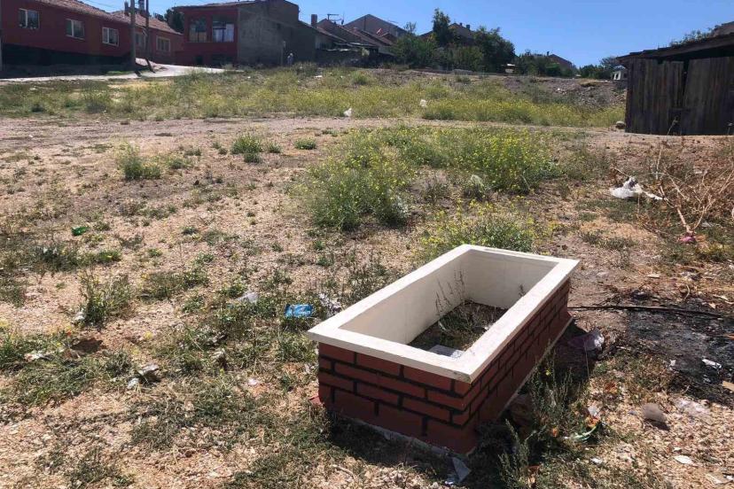 Eskişehir İmdat Sokak’ta boş arazide garaj kapısının önüne bırakılmış mezar, çevrede yaşayanların ilgisini topladı. Ne zaman ve kim tarafından bırakıldığı bilinmeyen mezarın üzerinde isim yazılı taşının bulunması, mahalle sakinlerinin merakını daha da arttırdı. Mezar çevrede tedirginlik oluştururken göze hitap etmeyen görüntüler oluşturdu.
