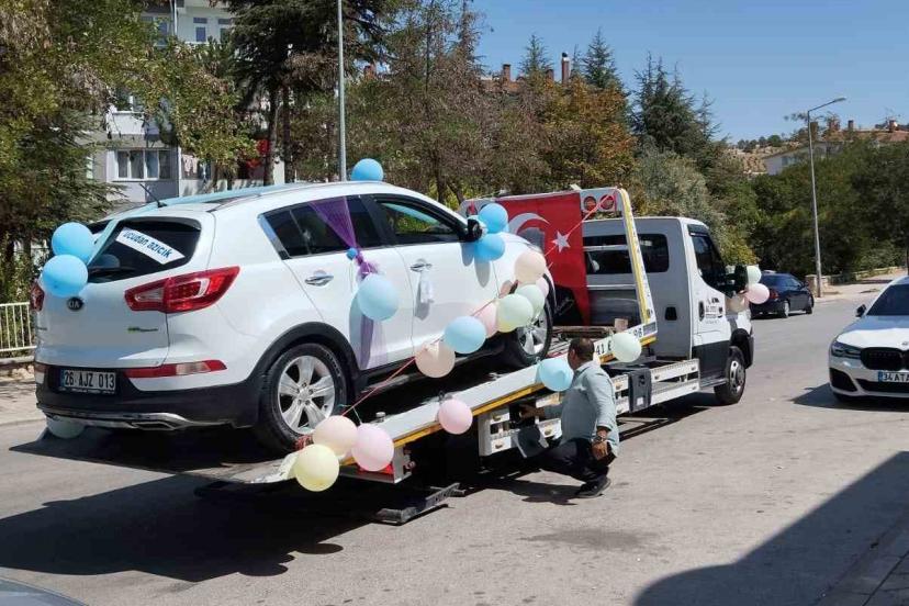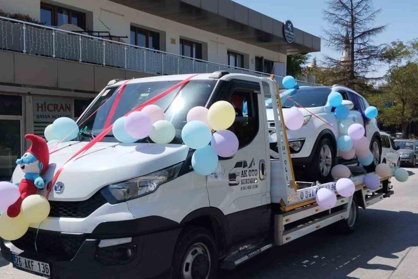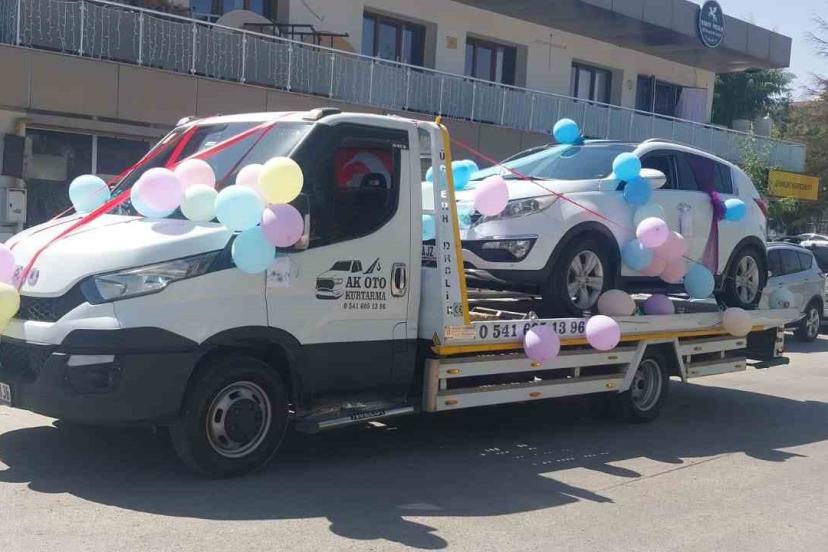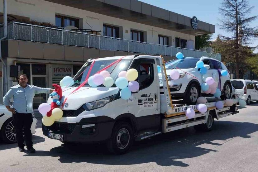 Çalışır durumdaki sünnet aracını farklılık olsun diye çekici ile taşıdılar