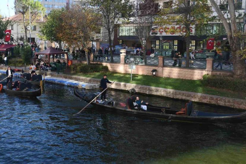 29 Ekim Cumhuriyet Bayramı’nı kapsayan resmi tatili fırsat bilen çok sayıda vatandaş, Türkiye’nin Venedik’i olarak bilinen Eskişehir’e akın etti. Havanın güzel olmasını değerlendiren yerli turistler, kentin simgelerinden biri olan Porsuk Çayı’ndaki gondollara binmek için iskelelerde yoğunluk oluşturdu. Gondol keyfi yapmak için dakikalarca sırada bekleyen ziyaretçiler, Porsuk Çayı üzerinde keyifli anlar yaşarken bol bol hatıra fotoğrafı çektirmeyi de ihmal etmedi.