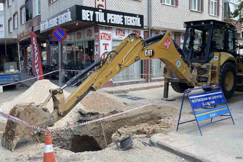 Eskişehir Büyükşehir Belediyesi Su ve Kanalizasyon İdaresi Genel Müdürlüğü (ESKİ) ekiplerinin altyapı çalışmaları sırasında m...