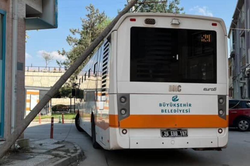 Eskişehir’de Belediye Otobüsü Direğe Takıldı: Direk Devrildi
