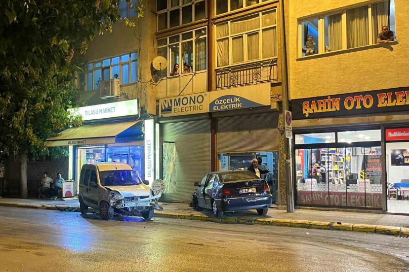 Eskişehir’de panelvan ile otomobilin çarpması sonucu savrulan 2 araçtan biri dükkana girdi.
