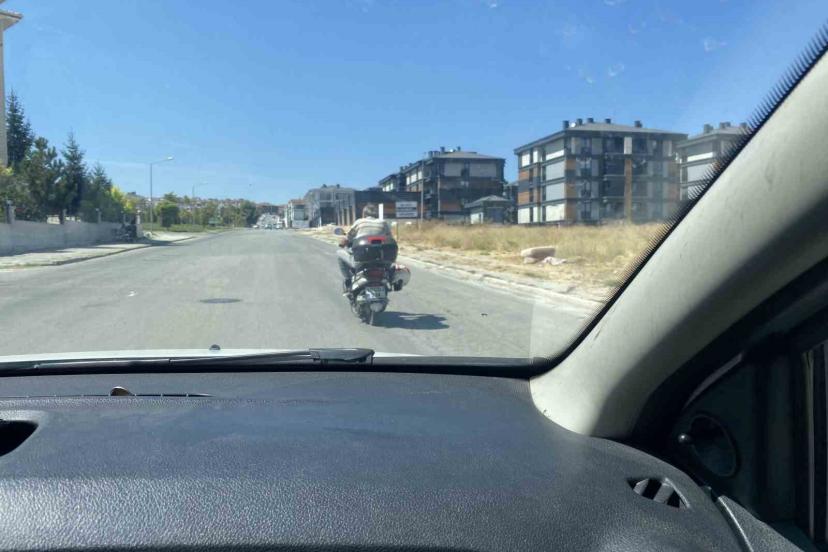 Eskişehir’de yanındaki kaskı kafası yerine motosikletin demirine takan bir sürücü canını tehlikeye attı.