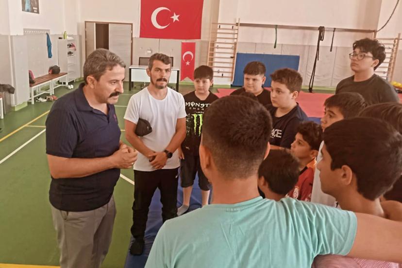 Eskişehir Gençlik ve Spor İl Müdürü Hasan Kalın, genç güreşçilerle bir araya geldi.