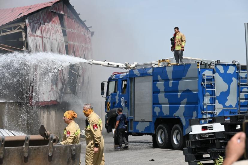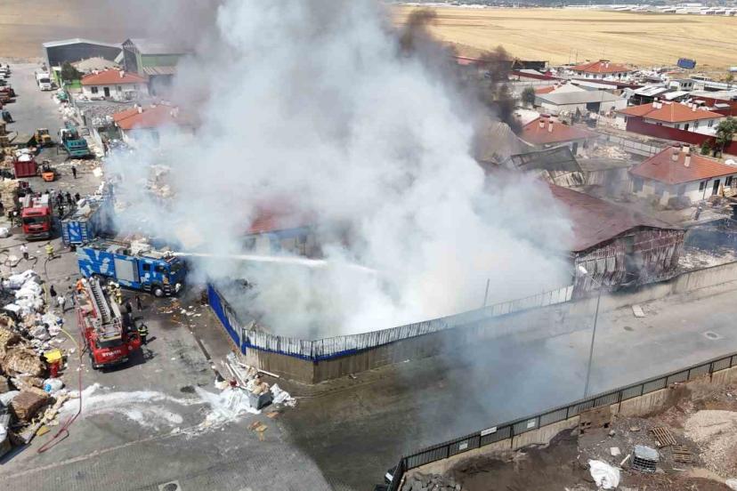 Geri dönüşüm depolarında çıkan yangının soğutma çalışmaları sürüyor