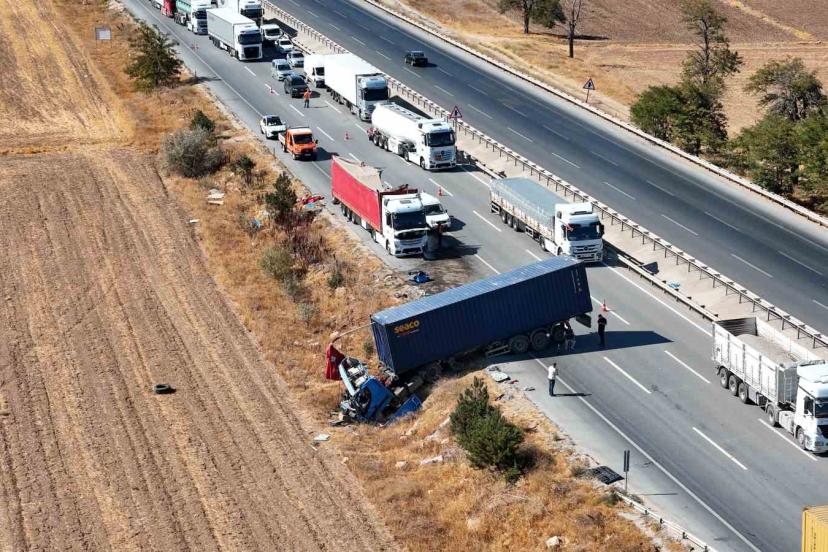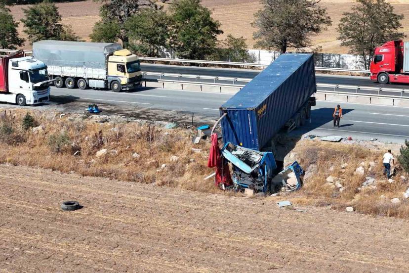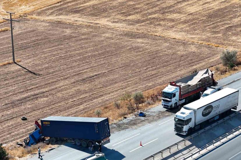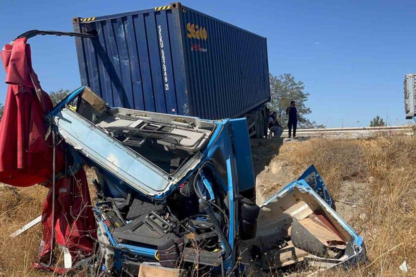 İki tır çarpıştı, şans eseri ezilen kabinden çıkan sürücüye diğer meslektaşı kurabiye ikram etti