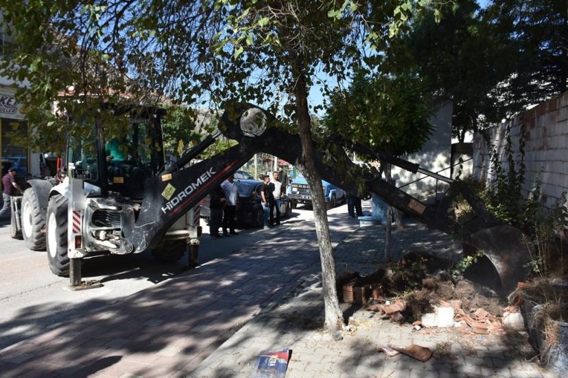İNÖNÜ’DE OKULLAR CADDESİ YENİLENİYOR, METRUK BİNA YIKILDI!