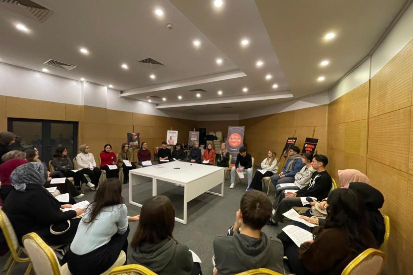 Program, eğitimciler eşliğinde yürütülen “Satır Aralarını Okumak” başlıklı söylem çözümlemesiyle devam etti. Bu bölümde gençler, medyada kullanılan dilin örtük mesajlarını, şiddetin normalleştirilme biçimlerini ve toplumsal etkilerini tartıştı. Çalışmanın devamında ise katılımcı gençler, edindikleri kazanımları sunumlarla paylaşarak farklı ve zengin bakış açıları ortaya koydu.