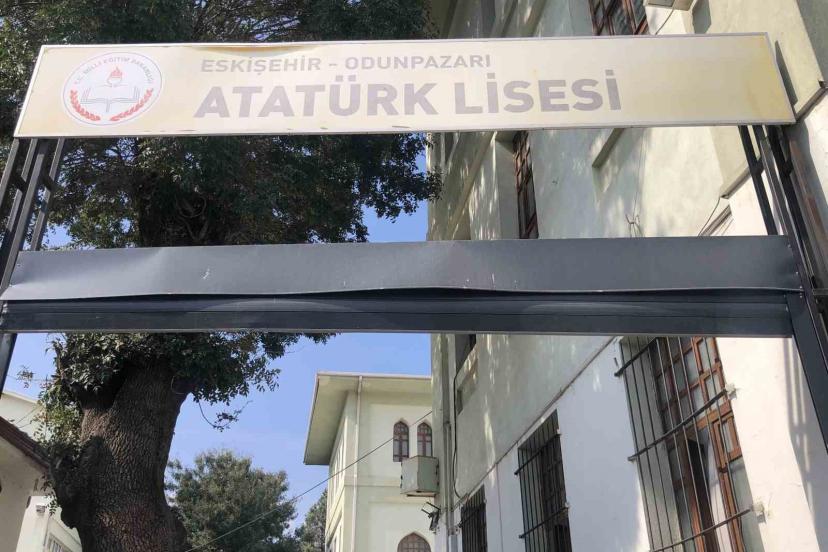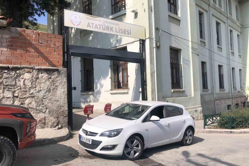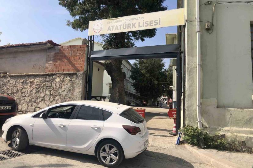 Eskişehir Atatürk Lisesi’nin kepenkli kapısı, bir kamyon kasasının takılması sebebiyle zarar gördü.