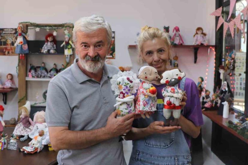 Eskişehir’de çocukları için başladıkları bez bebek yapımını bir tutkuya dönüştüren Zafer ve Arzu Özer çifti, aile saadetlerini sanatla harmanlayarak hem doğal oyuncaklar hem de eşsiz sanat eserleri üretiyor.