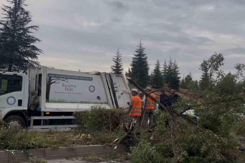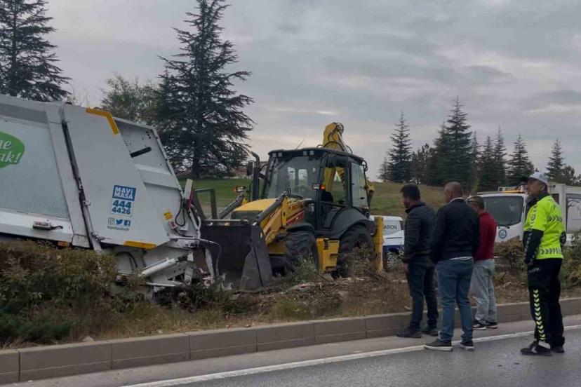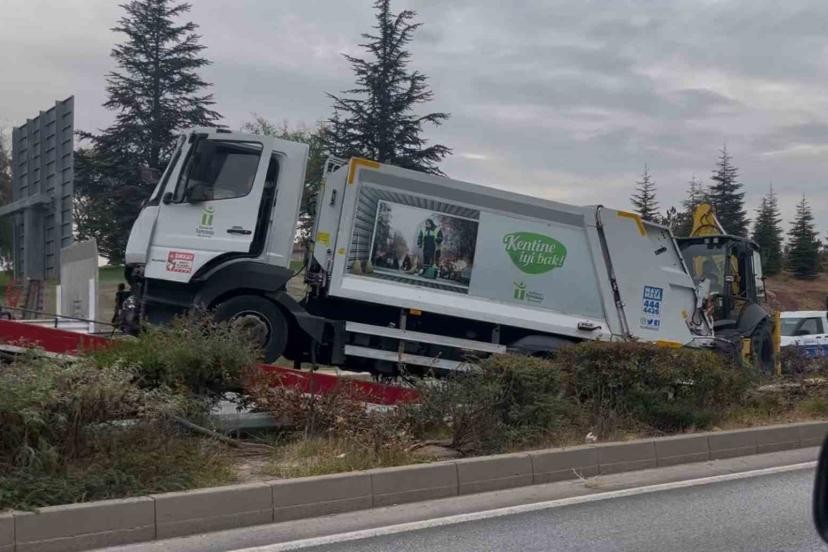 Eskişehir’de sürücüsünün kontrolünden çıkan çöp kamyonu orta refüje çıkarak ağaçları yatırdı.