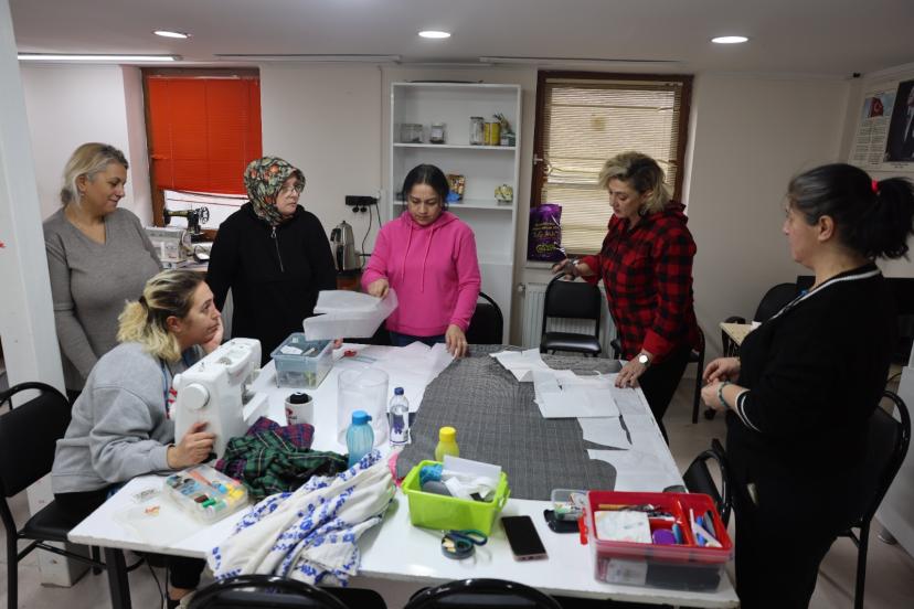 Yenikent Mahallesi’nde bulunan Seramik Park içerisindeki Engelsiz Kültür ve Sanat Merkezi, bu kez kumaşların ve dikiş makinelerinin sesine ev sahipliği yapıyor. Tamamı kadınlardan oluşan atölye, yoğun ilgi nedeniyle iki ayrı grup halinde sürdürülüyor. Çarşamba ve perşembe günleri gerçekleştirilen eğitimlerde toplam 31 kadın, profesyonel dikiş tekniklerinden kalıp çıkarmaya kadar giyim üretiminin tüm inceliklerini öğreniyor.