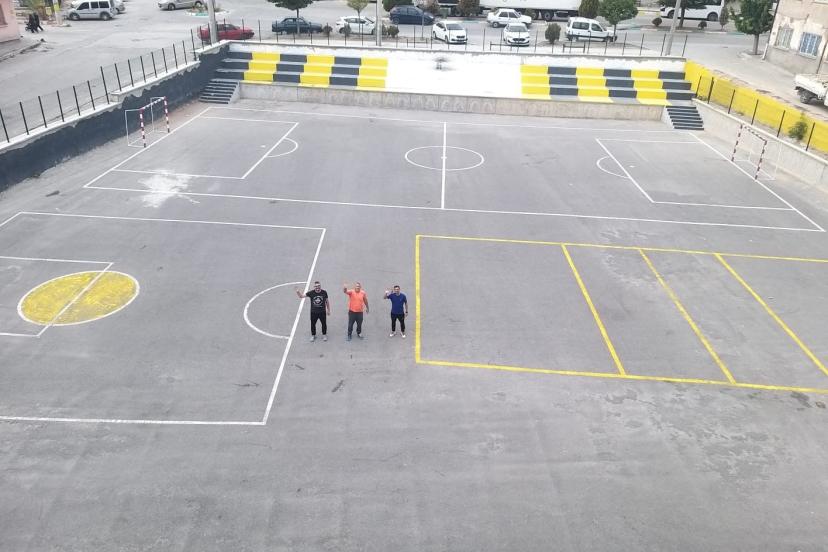 Afyonkarahisar Emirdağ Mithatpaşa Ortaokulu öğretmenleri okul içerisinde spor etkinliklerinin gerçekleştirdiği sahaların çizgilerini yenileyerek örnek bir davranışa imza attılar.