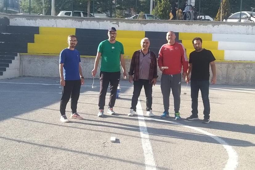 Afyonkarahisar Emirdağ Mithatpaşa Ortaokulu öğretmenleri okul içerisinde spor etkinliklerinin gerçekleştirdiği sahaların çizg...
