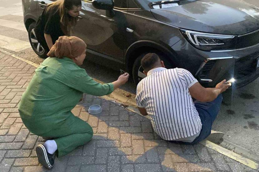 Araç sahibinin kendilerine yardımcı olmadıklarını belirterek tepki gösteren Arzu Ay, "Kedi sesi duyduk, geldik. Kendi çabalarımızla çıkarmaya uğraştık ama çıkaramadık. İki defa polisi aradık, araç sahibini arattırdık, ancak gelmedi. Yaklaşık 45 dakikadır buradayız" dedi.