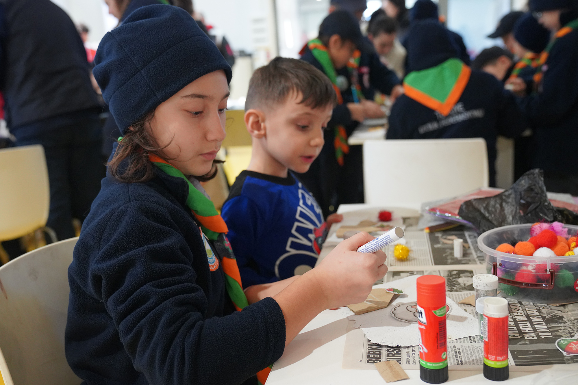 Vecihi Hürkuş Havacılık ve Teknoloji Parkı’nda düzenlenen etkinlikte çocuklar, geri dönüştürülmüş kâğıtlar kullanarak yılbaşı kartları hazırladı. Hazırladıkları kartlara yeni yıl dileklerini yazan izciler, hem doğaya yönelik duyarlılıklarını hem de geleceğe dair umutlarını paylaştı. Keyifli etkinlik, çocukların hem el becerilerini geliştirmelerine hem de çevre bilincini yaratıcı bir şekilde pekiştirmelerine katkı sağladı.