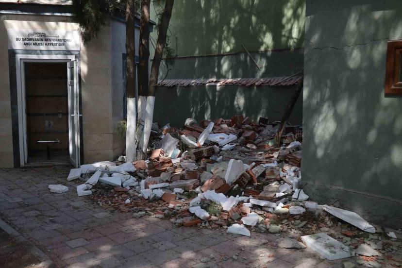 Eskişehir Tepebaşı’nda yürütülen yıkım çalışmasında molozlar, bitişikteki Sarısu Kurşunlu Camii’nin bahçesine döküldü ve bahçe duvarı hasar gördü. Tehlikeye karşı önlem alan yetkililer, hasarlı bölgenin yakınındaki şadırvanı kullanıma kapattı.